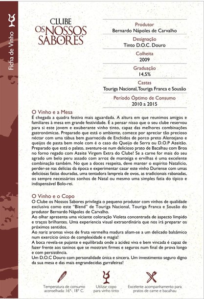 Uma vez seleccionados elabora-se uma cuidada ficha técnica sobre o vinho, na qual constam os dados mais relevantes sobre o mesmo, nomeadamente a prova organolóptica, acompanhamentos gastronómicos, história do produtor, do vinho e da região.